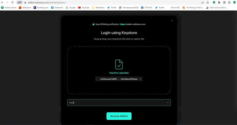 2. Log in here with the Keystore file & Password of your MultiversX Web Wallet: