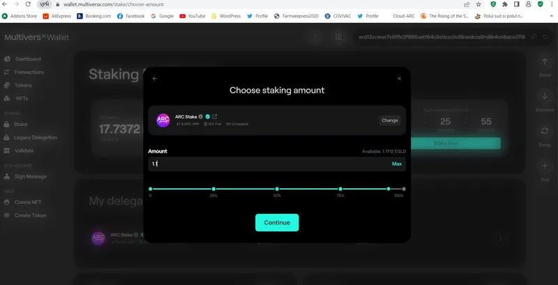 5. Choose ARC Stake as your staking provider, then click on the “Continue” button: